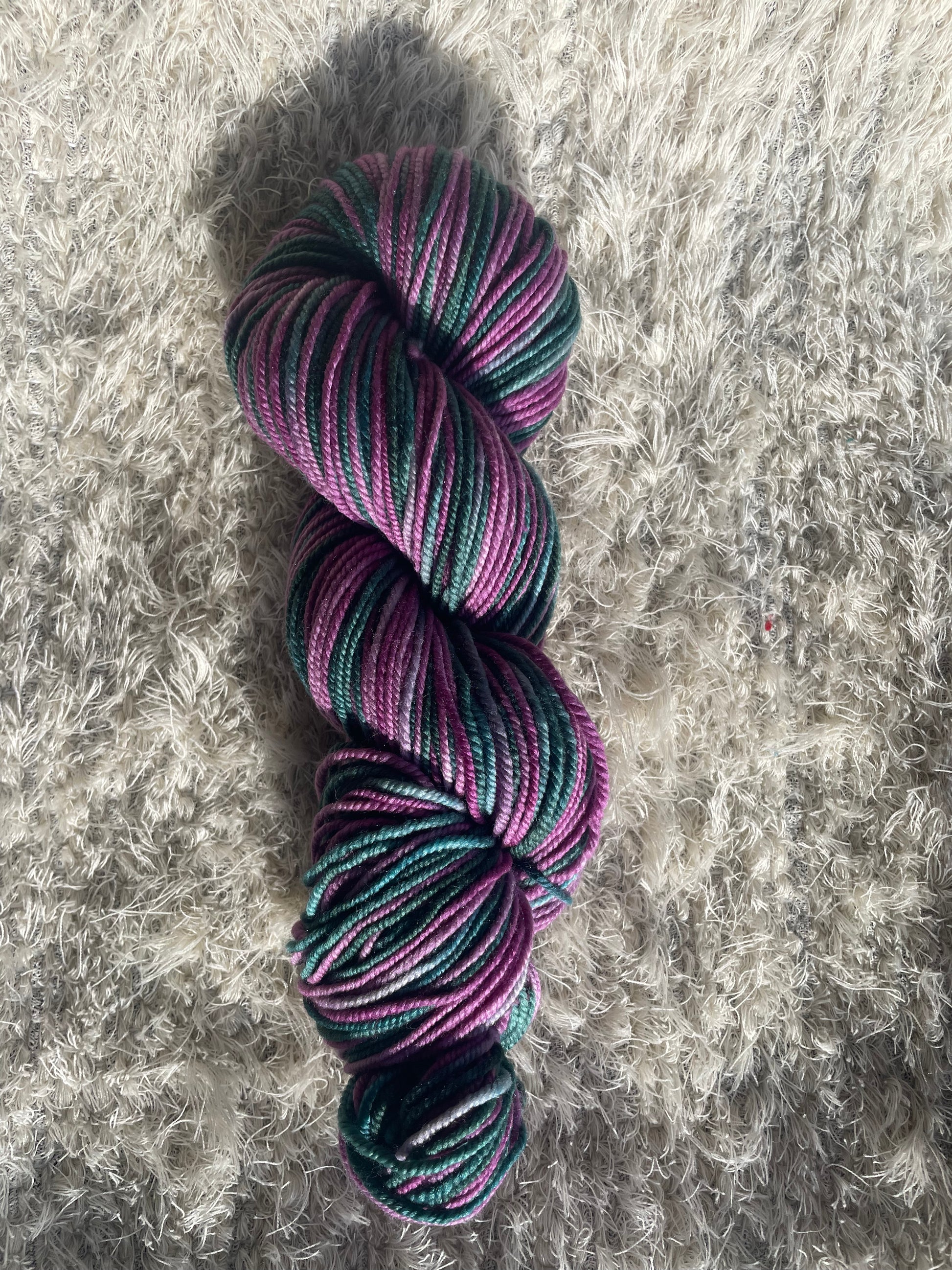 I’ll be your Huckleberry! Huckleberries are Montana’s thing we love them in pies, pancakes, bread, milkshakes and of course yarn! Our best selling color way on our best selling base-Win Win! The base is 80% Shaniko wool and 20% Mulberry silk in an oh so versatile worsted weight. If you aren’t familiar with Shaniko wool it is merino and or merino/Rambouillet cross wool. It is completely traceable to ranches in the US West.